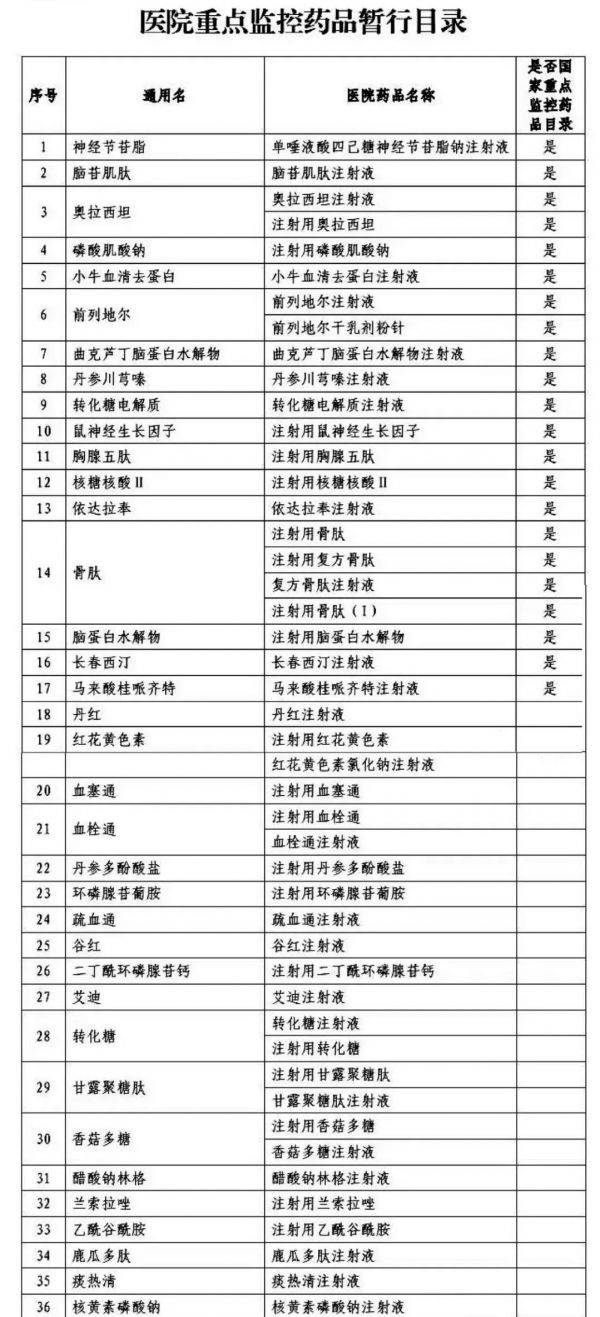 同一时期,业内流传青岛发布的《医院重点监控药品暂行目录》,共涉及36个药品通用名,涵盖了17个国家版重点监控药品。
