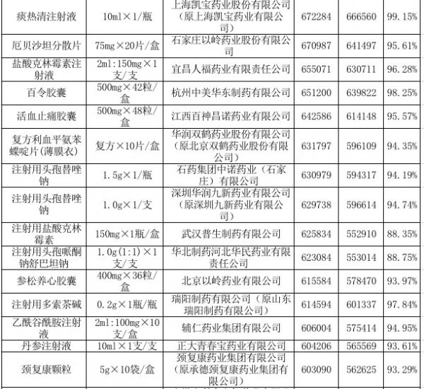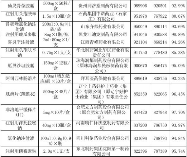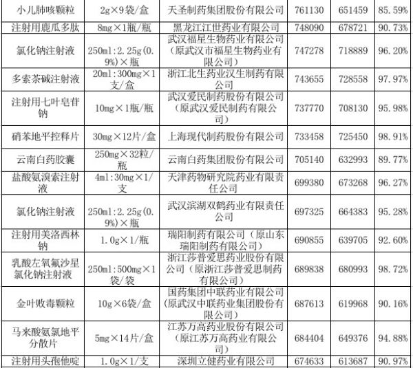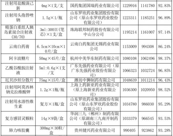 此外,采购金额排名前100的药品中,还包括拜耳、科伦、神威、云南白药、天士力等知名药企的产品。