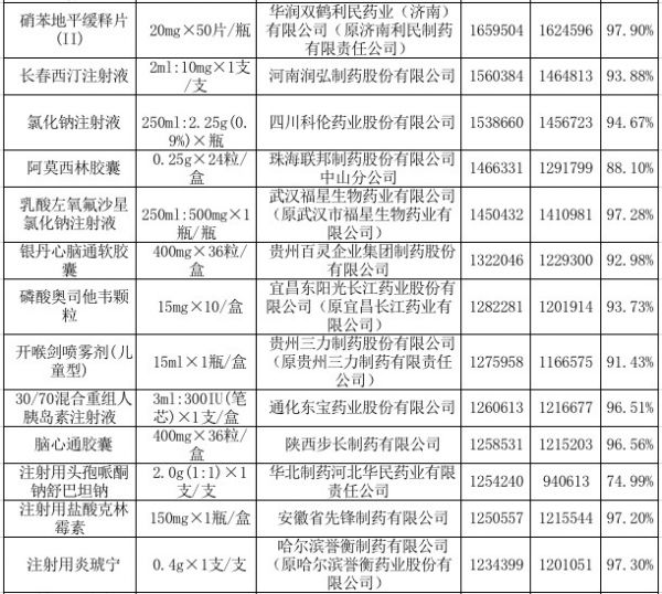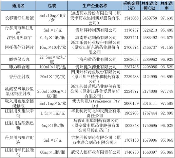 其中,采购金额排名前100的药品,采购总额为1.06亿元,配送金额为1亿元。