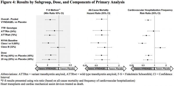 FDA对VYNDAQEL的这一批准是基于名为ATTR-ACT的关键性III期临床试验的结果。试验结果表明,VYNDAQEL在30个月的试验过程中,与安慰剂相比显著降低由全因死亡率和心血管相关住院率组成的综合指标。VYNDAQEL不但能够将全因死亡风险降低30%,将心血管相关住院风险降低32%,还可以提高患者的其它功能性指标。