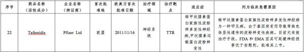 氯苯唑酸为辉瑞研发的一款针对遗传性转甲状腺素蛋白淀粉样变性(ATTR)的罕见病药物,主要有葡甲胺(VYNDAQEL)和游离酸(VYNDAMAX)2种剂型。因其突破性疗效,遂即纳入我国“第一批临床急需境外新药名单”,并于今日通过《接受药品境外临床试验数据的技术指导原则》进行上市申报,之前在国内未进行过临床实验。