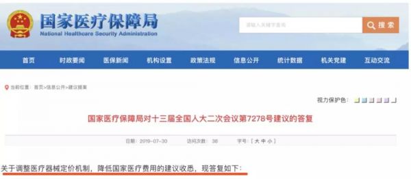 7月30日上午,据国家医保局官网消息,医保局回复了对全国人大代表关于“调整医疗器械定价机制,降低国家医疗费用的建议”,同时也指出了下一步关于高值耗材治理的工作安排。