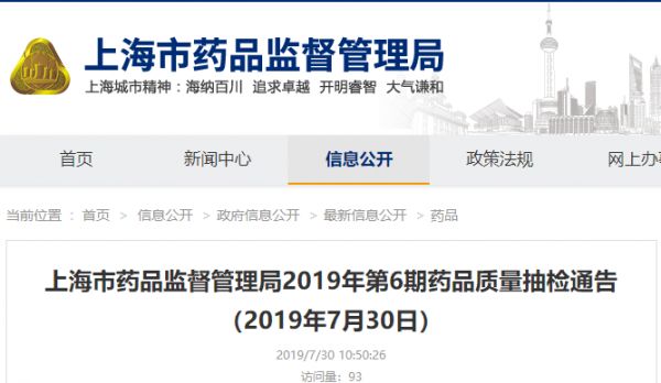药监通告,这42批次药品不符合规定,停售、召回,药店快排查。7月30日,上海市药监局公布了2019年第6期药品质量抽检通告。