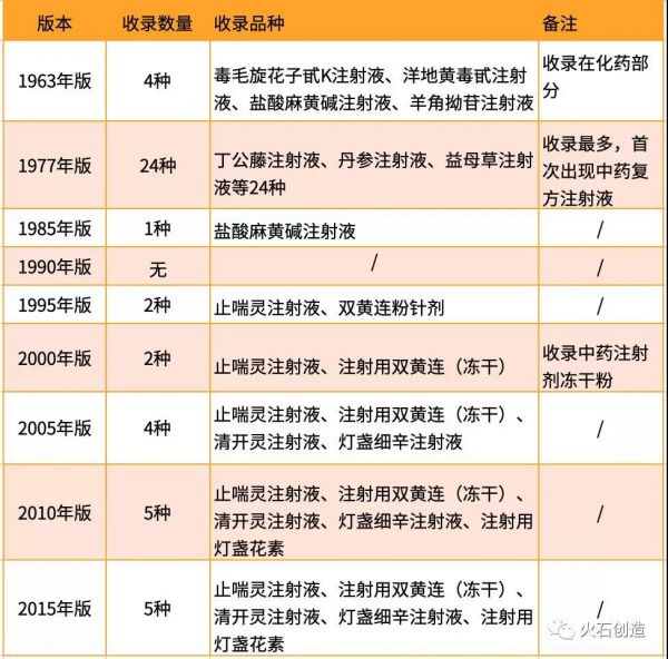 自1940年我国第一个中药注射剂柴胡注射液出现以来,中药注射剂以吸收快、作用迅速等特点,成为临床上急症、重症等患者的选择剂型[1]。此后,中药注射剂迎来高速发展期。1963年版药典首次收录中药注射剂,1977年版药典中收录24种中药注射剂,达到高峰,并且首次收录中药复方注射液,经过历年的变动改革,最新版药典(2015年版)只收录5个中药注射剂。