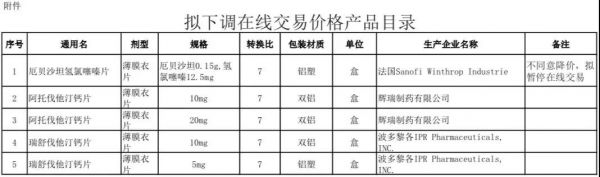 而法国赛诺菲的厄贝沙坦氢氯噻嗪片,因不同意降价,拟暂停在线交易。