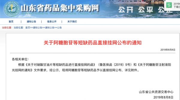 目前,为了缓解阿糖胞苷的短缺问题,全国各省对于该品种都采取了直接挂网的采购方式。例如山东省,在8月8日就发布通知,对于阿糖胞苷等短缺药品直接挂网。