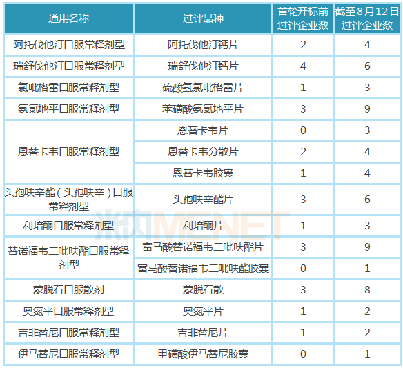 根据流传的相关文件显示,第二轮带量采购扩面不扩品种,以首批带量采购中标价为天花板,所有此轮开标前通过一致性评价的原研及仿制药生产企业均可参与竞标,且取消“单一中标模式”。据米内网统计,截至8月12日,25个“4+7”品种中有12个较首批带量采购新增了过评企业。面对即将到来的全国市场以及日益增加的竞争对手,不少药企主动降价,抢占市场。