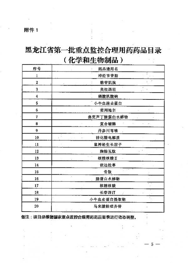 黑龙江省第一批重点监控合理用药药品目录公布。