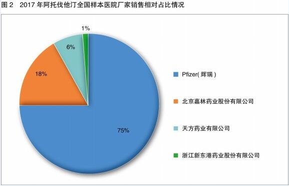 2017年,阿托伐他汀在国内样本医院的销售额达到近22亿元,2015~2017年CAGR为5.1%。国内拥有阿托伐他汀生产批文的企业包括浙江海正、北京嘉林、东阳光、石药等16家。按阿托伐他汀剂型分,有1家胶囊剂生产企业、5家片剂生产企业、13家原料药生产企业。其中,浙江新东港和北京嘉林同时拥有阿托伐他汀原料药和片剂批文,天方药业同时拥有阿托伐他汀原料药和胶囊剂批文。2015~2017年,在国内样本医院市场占比中,阿托伐他汀各主要供应商的市场占比没有太大变化,浙江新东港的市场占比有所增长,但2017年仍然仅占样本医院市场整体的1%(见图2)。