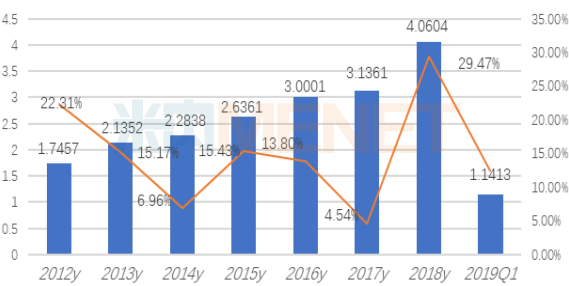 图3:2012-2019年Q1重点省市公立医院终端疫苗销售情况(单位:亿元)