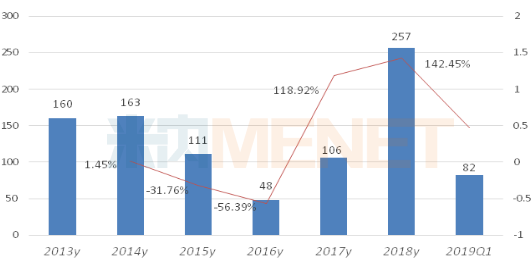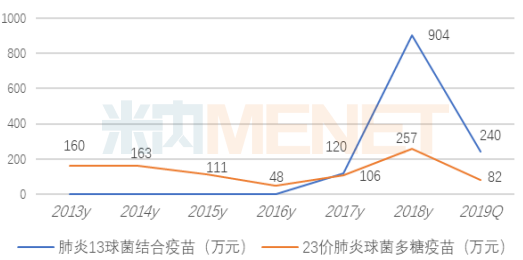 图4:2013-2019年Q1重点省市公立医院终端肺炎疫苗销售情况(单位:万元)