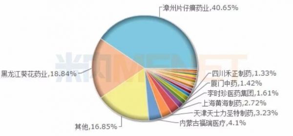 据米内网数据显示,片仔癀药业的产品主要销售市场在中国城市零售药店终端,最近四年榜首位置无人撼动,市场份额从2015年的33.54%上涨至2018年40.65%。