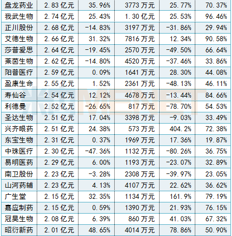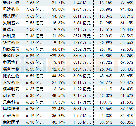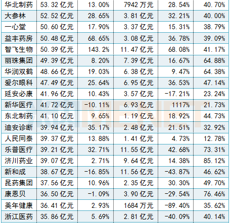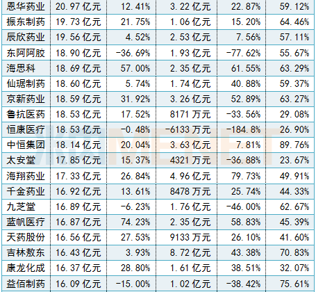 日前,上市公司2019年上半年成绩单已经披露完毕,据统计,A股288家医药企业中,上海医药、九州通、白云山、国药一致、国药股份、海王生物等17家营收超过100亿元;白云山、恒瑞医药、迈瑞医疗等5家净利润超过20亿元;我武生物、康辰药业、贝达药业、奥赛康等9家毛利率超过90%。