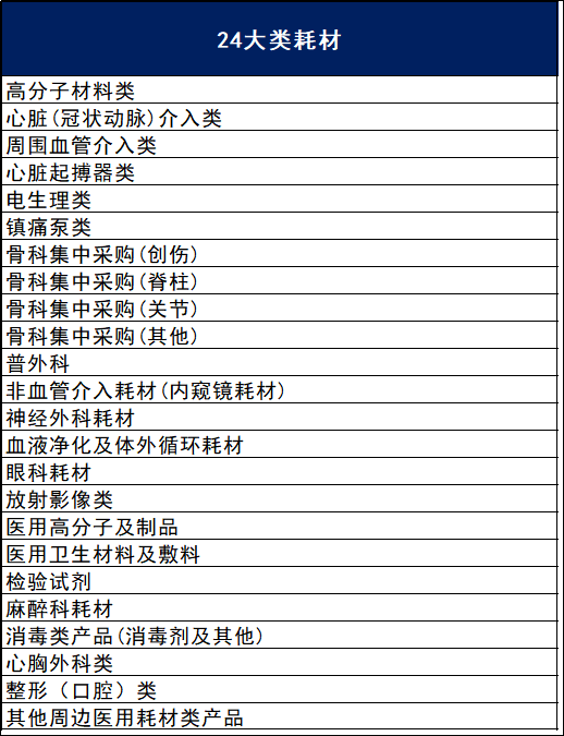 以下24大类医用耗材每个投标企业每个分类不超过3个。