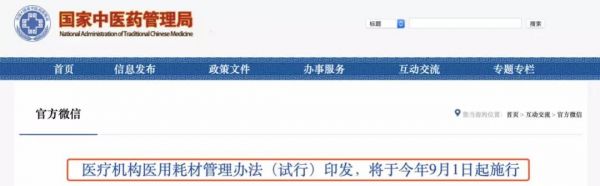 9月1日起,由国家卫生健康委、国家中医药管理局联合发布的《医疗机构医用耗材管理办法(试行)》开始执行。