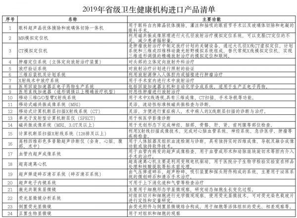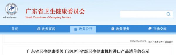 近日,据广东省卫健委消息,为进一步推进省级卫生健康机构政府采购进口产品目录清单管理,简化程序,提高进口产品政府采购效率,经有关单位自主申报,卫健委组织专家统一论证,形成了 2019年省级卫生健康机构进口产品目录清单。