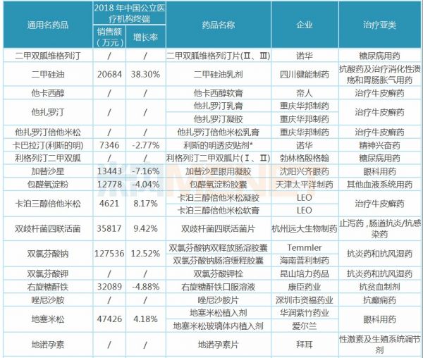 新版医保目录新增化学药中,有58个(细分到剂型)为独家品种,从药物治疗亚类看,糖尿病用药、抗高血压药等慢性用药占较大比例。58个独家化药在2018年中国公立医疗机构终端合计销售额(以通用名计)超过120亿元。