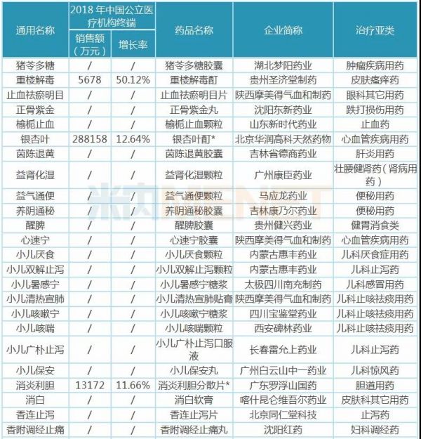 表1:新版医保目录新增中成药中的独家品种(含独家剂型)