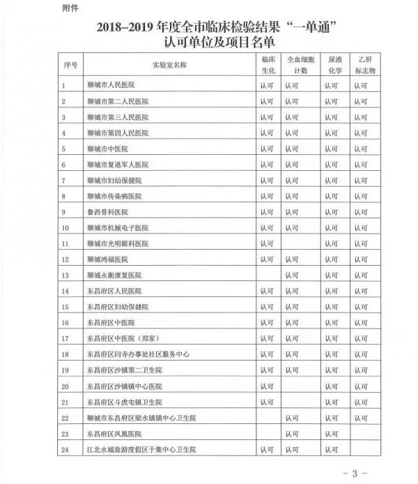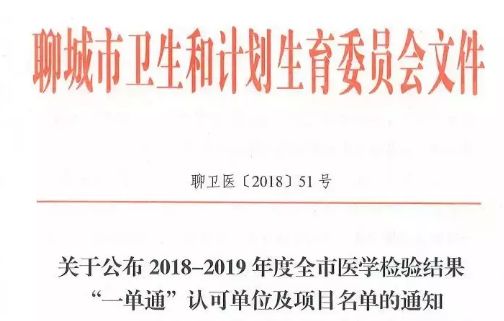 2018年12月,聊城市将全市165家医疗机构检验科纳入了2018-2019年度的全市医学检验结果一单通认可单位。
