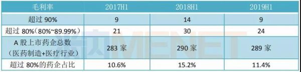 近日,上市公司2019上半年业绩悉数公布完毕,A股上市药企(含医药制造与医疗行业)数量达289家,其中毛利率超过80%的药企有33家,占比达11.4%,与2018上半年相比有所下滑。2019年医药行业受多个新政影响,带量采购、国家重点监控合理用药目录、新医保目录等带来的机遇与冲击会否持续下去?看看这些药企领头羊有何新策略。