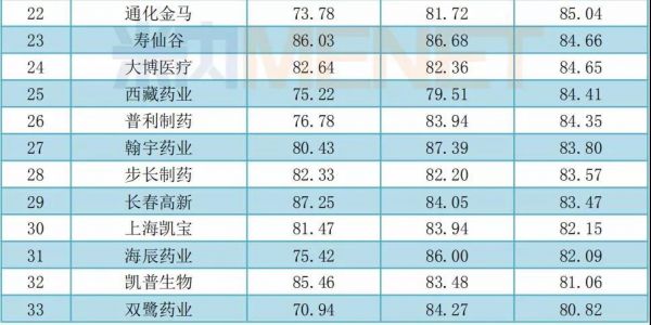 表2: 2019上半年33家毛利率超80%的药企近三年同期的情况(单位:%)
