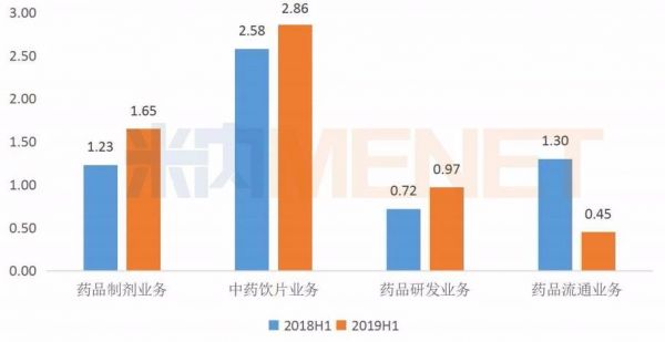 图1:中国中药各业务板块的营业额(单位:亿元)