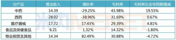 康美药业2019年上半年,营业收入为81.33亿元,同比下滑15.35%,净利润为8550万元,同比下滑82.50%。半年报中已不再把中药饮片业务的营收单独列出,只显示中药业务营收为14.39亿元,占公司总营收比例约为17%。无论是中药还是西药业务的营收均有接近30%的下滑,可见,康美药业受事件影响的余热未散。