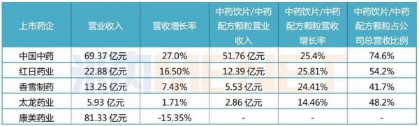 配方颗粒的发展势头强劲,中国中药、红日药业的配方颗粒增速都在30%左右,而作为中药饮片龙头的康美药业,目前来看重创后尚未能“回血”,而香雪制药、太龙药业作为第二梯队尽管中药饮片增速也有20%左右,但总的体量还不算太大。
