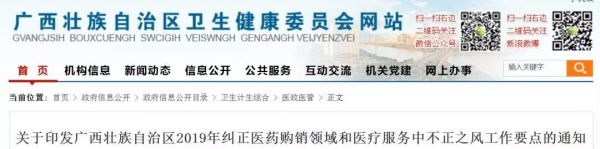 日前,广西卫健委、药监局、公安厅、财政厅等10部门联合印发的《广西壮族自治区2019年纠正医药购销领域和医疗服务中不正之风工作要点》(以下简称《工作要点》)以及10部门联席会议机制,经广西卫健委官网公布。