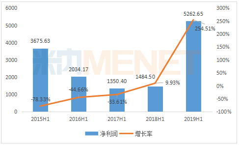 2015H1-2019H1海正药业净利润情况(单位:万元)