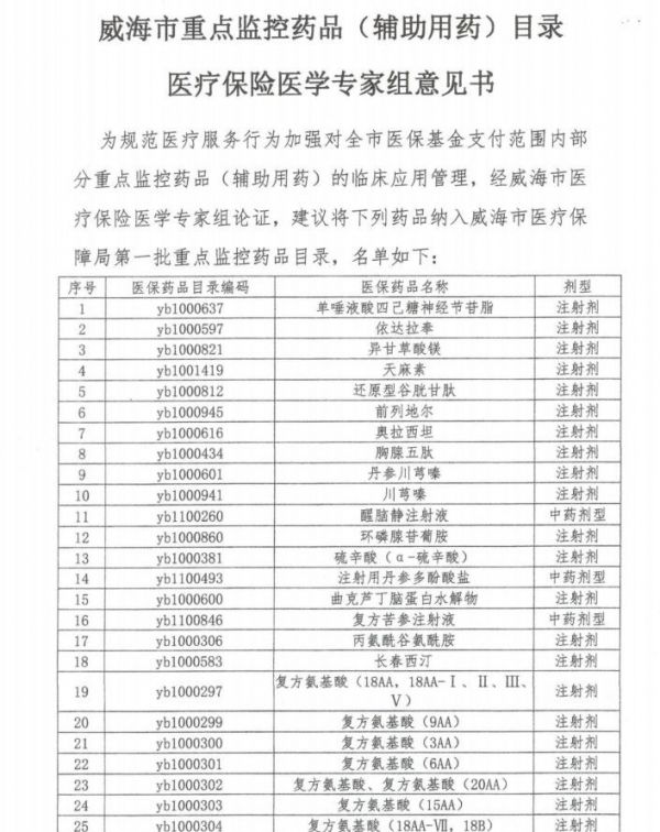 截至目前,威海市已经下发了两批重点监控目录,第一批为27个品种,第二批为85个品种。