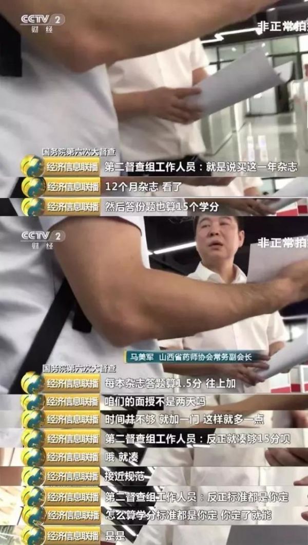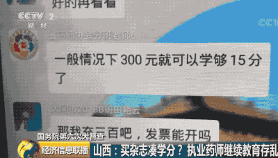 而据央视报道,在山西省药师协会,执业药师仅仅需花300元购买3段75分钟的音频即可完成45个学时、15个学分的学习任务,远远小于国家规定的课时和学分标准。