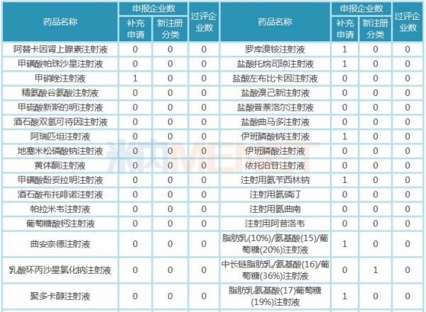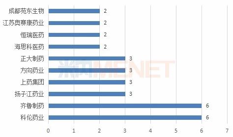 从企业申报情况看,26个品种涉及28家企业(以集团计),申报品种数超过3个(含3个)的有科伦药业、齐鲁制药、扬子江药业、上药集团、方向药业、正大制药,其中科伦药业、齐鲁制药以6个品种领跑。