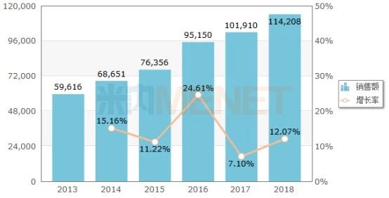 图1:2013-2018年中国公立医疗机构终端布洛芬销售情况(单位:万元)