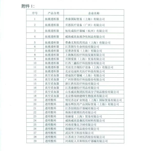 采购产品为血液透析器、真空采血器和透明敷料,还公布了邀请参加通气会的相关企业代表,如下图: