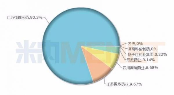 据米内网数据显示,2018年中国城市公立医院、县级公立医院、城市社区中心及乡镇卫生院(简称中国公立医疗机构)终端,盐酸右美托咪定注射液的销售额高达30亿元,其中领军企业恒瑞医药的市场为80.3%,扬子江药业集团仅有0.22%。