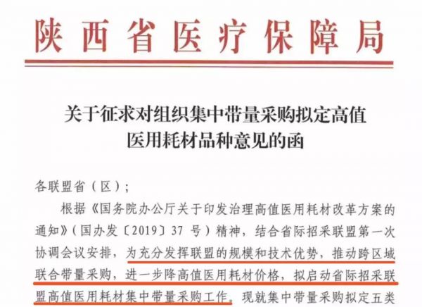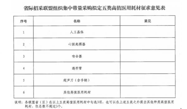 上述文件指出,本次意见根据《国务院办公厅关于印发治理高值医用耗材改革方案的通知》精神,结合省际招采联盟第一次协调会议安排,为充分发挥联盟的规模和技术优势,推动跨区域联合带量采购,进一步降高值医用耗材价格,拟启动省际招采联盟高值医用耗材集中带量采购工作。