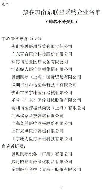 值得注意的是,《公告》还公布了拟参加联盟采购企业名单(文末附完整名单):