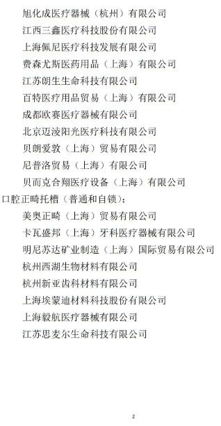 拟参加口腔正畸托槽(普通和自锁)谈判的包括美奥正畸、上海毅航等械企。
