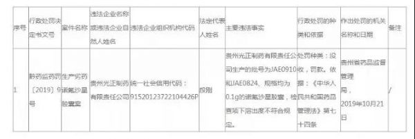 10月25日,贵州省药监局公布一则行政处罚案件,贵州光正制药有限责任公司因生产劣药诺氟沙星胶囊被罚。