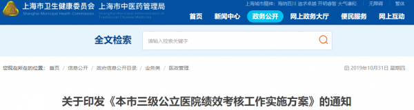 10月30日,上海市卫健委发布《本市三级公立医院绩效考核工作实施方案》,对47家公立医院全面考核(名单见文末)。