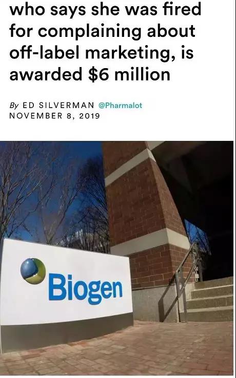 日前,据媒体报道渤健(Biogen)前销售代表,因拒绝进行超适应症推广被解雇,这位药代对这家药企提出了报复性诉讼,胜诉后获得600万美元赔偿,折合人民币4197.24万元。
