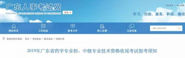 近日,广东人事考试网发布了《2019年广东省药学专业初、中级专业技术资格收尾考试报考须知》的通知。