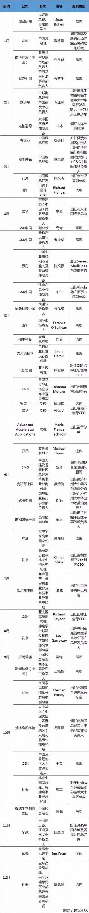 2019年跨国药企人事变动情况