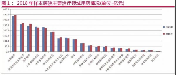 现从2018年样本医院各领域、品种、企业销售额及增长率梳理分析,企业可在宏观上掌握医药行业发展动态。