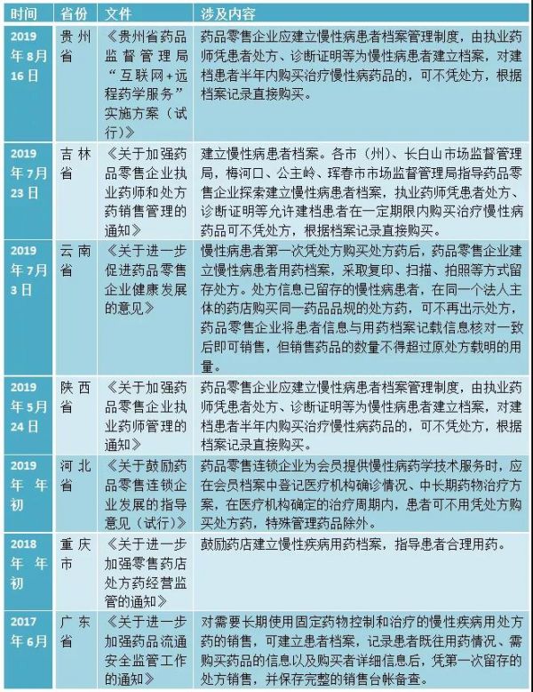 其实,提出该项举措的还不只有以上三省,赛柏蓝—药店经理人梳理发现,截止目前,还有7个省级行政区明确表态,零售药店给慢性病患者建档管理,即可凭第一次留存的处方销售处方药。具体如下: