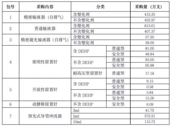 根据华招器械网消息,本次采购定价定量,耗材分为普通输液器、密闭性留置针等7大类,采购总量超过3000万,具体如下图:
