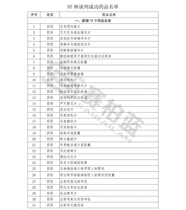 附97种谈判成功药品名单