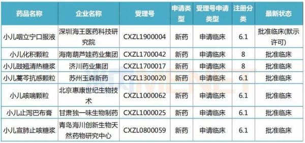 表5:2010年至今已获批临床的非优先审评儿科中成药情况