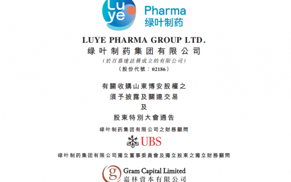 1月6日,绿叶制药发布了有关收购山东博安股权之须予披露及关联交易及股东特别大会通告。